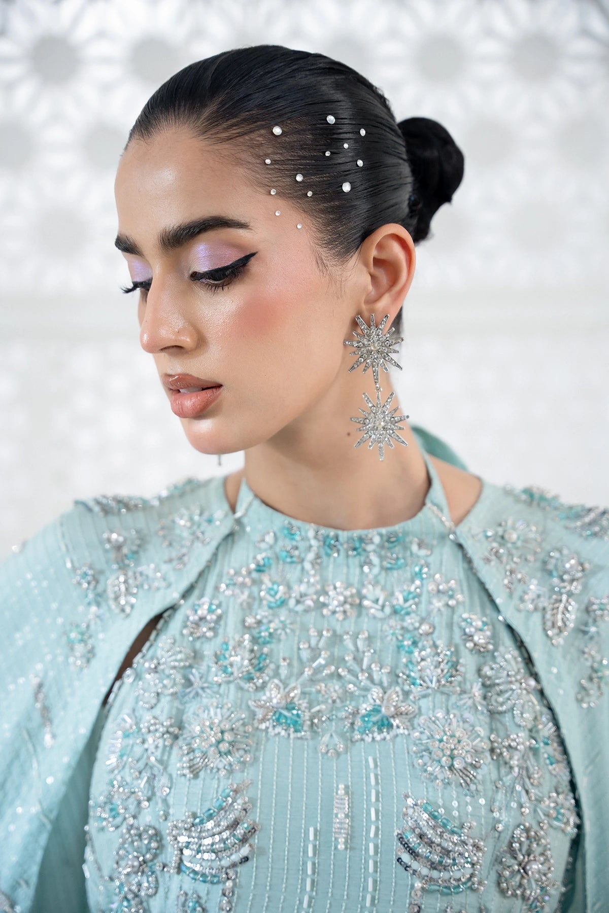 Storm makes a statement the moment you walk in. Cool-toned confidence — silver and teal woven into quiet power. It's your go-to for formal occasions, wedding receptions, or any event where you want to feel bold, elegant, and unforgettable.